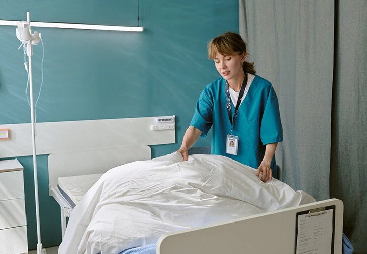 Cotton draw sheet designed for patient handling and mattress protection, suitable for high-use hospital environments.