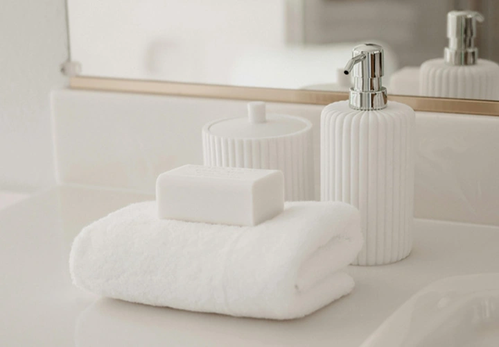 Cotton hand towel designed for absorbency, softness, and repeated institutional washing.