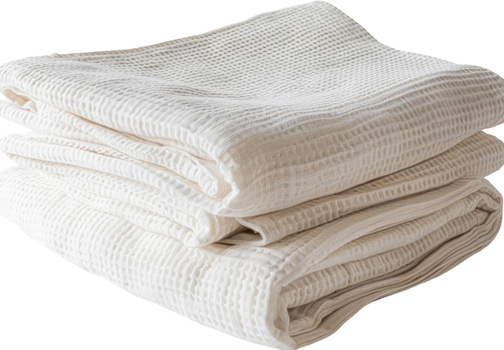Waffle-textured blanket offering breathable warmth and lightweight comfort.